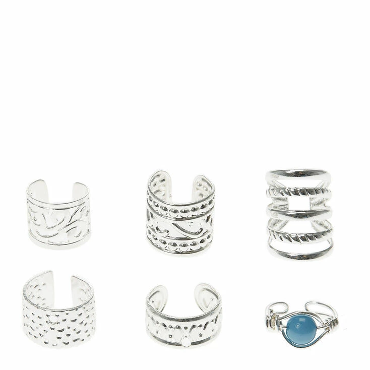 For the ultimate edgy and on trend look you will need this 6 pack of silver tone ear cuffs. Each ear cuff has a pretty individual textured design with one cuff featuring a cool turquoise stone detail.
