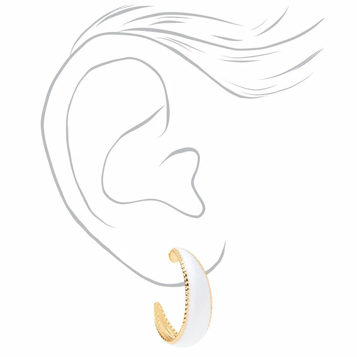 These trendy hoop earrings are here to dress up your look or keep it casual chic. Featuring a studded pattern and gold and white design, pair these earrings with other gold-tone jewellery accessories to complete any look.