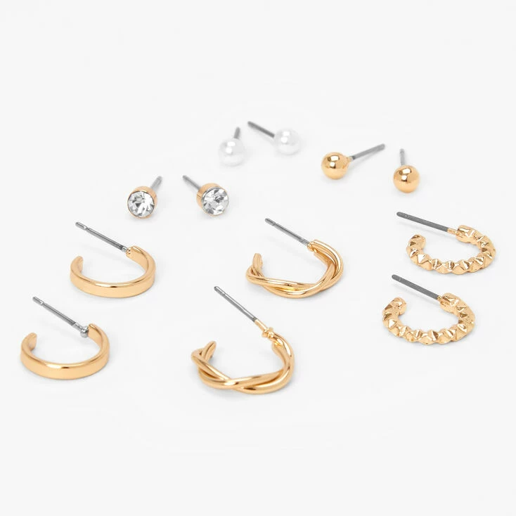Expand your earring collection with this set of hoop and stud earrings in gold-tone and faux crystal and pearl styles. With six designs to choose from, you’ll always have the perfect pair for any outfit.