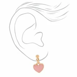 Budget 💯 Claire’s Gold Pink & Red Heart Drop Earrings – 3 Pack 🔔