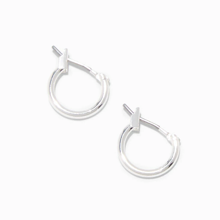 Complete your look with these extra small silver-tone hoops. They have a classic look and a hinge closure.