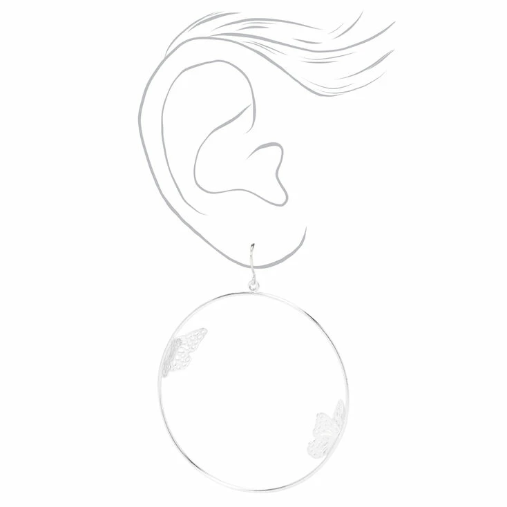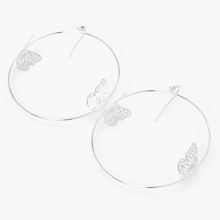 Upgrade your ordinary hoop earrings with a fluttery detail. These earrings have filigree butterfly accents.