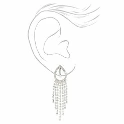 Coupon βοΈ Claire’s Silver Crystal Teardrop Outline 1.5″ Clip On Drop Earrings π