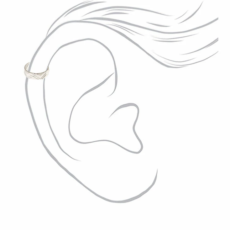 Ear cuffs are the latest trend and this one is calling your name! This silver-tone ear cuff features a zig zag print pattern and can easily be clipped right onto your cartilage.